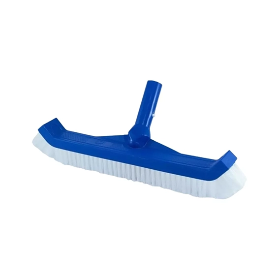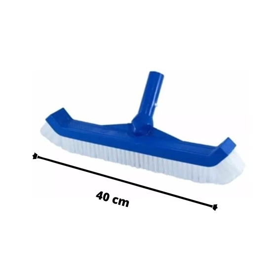 Possui base com cerdas em nylon, resistentes e macias, que não agridem o fundo da piscina.